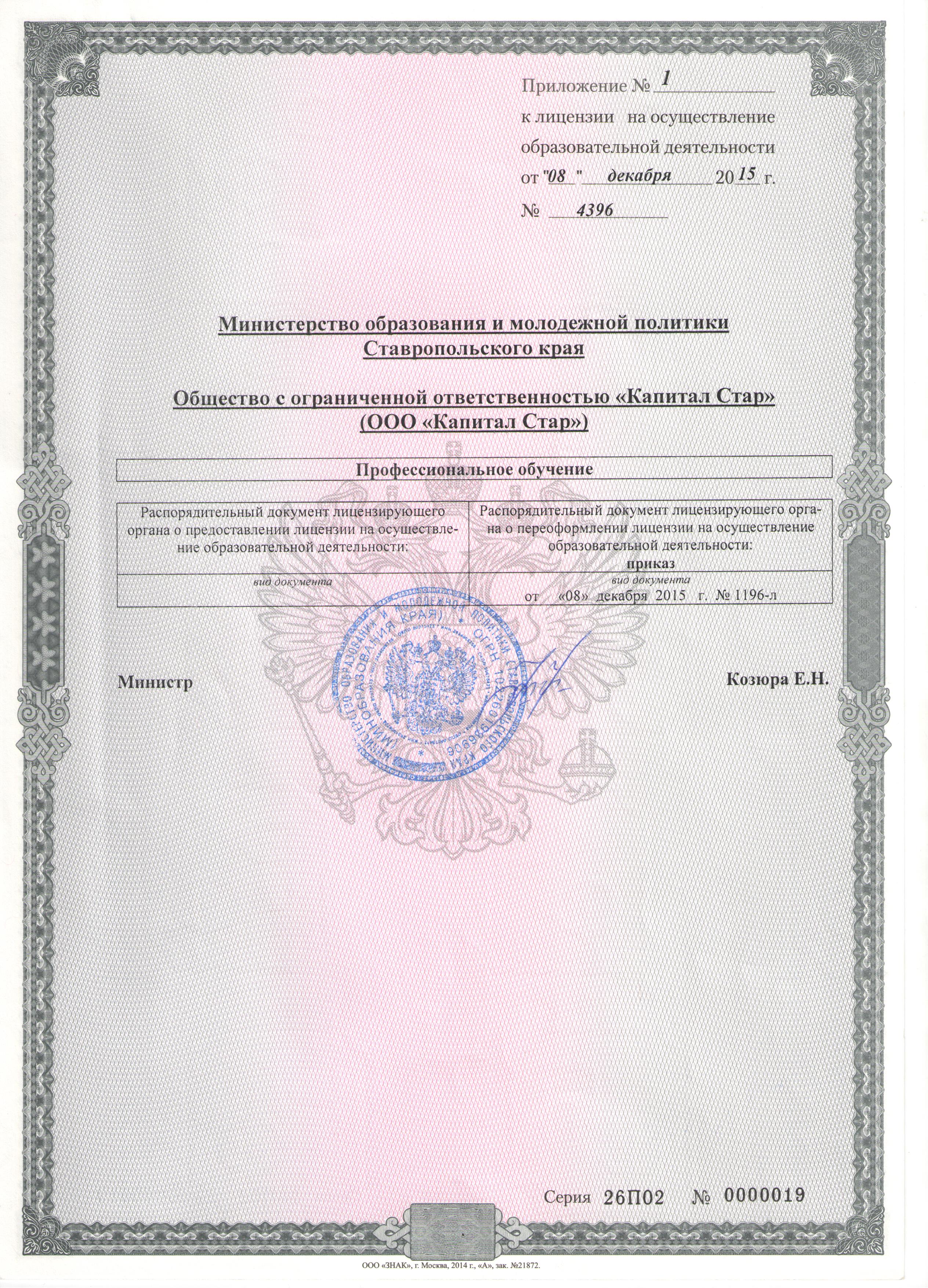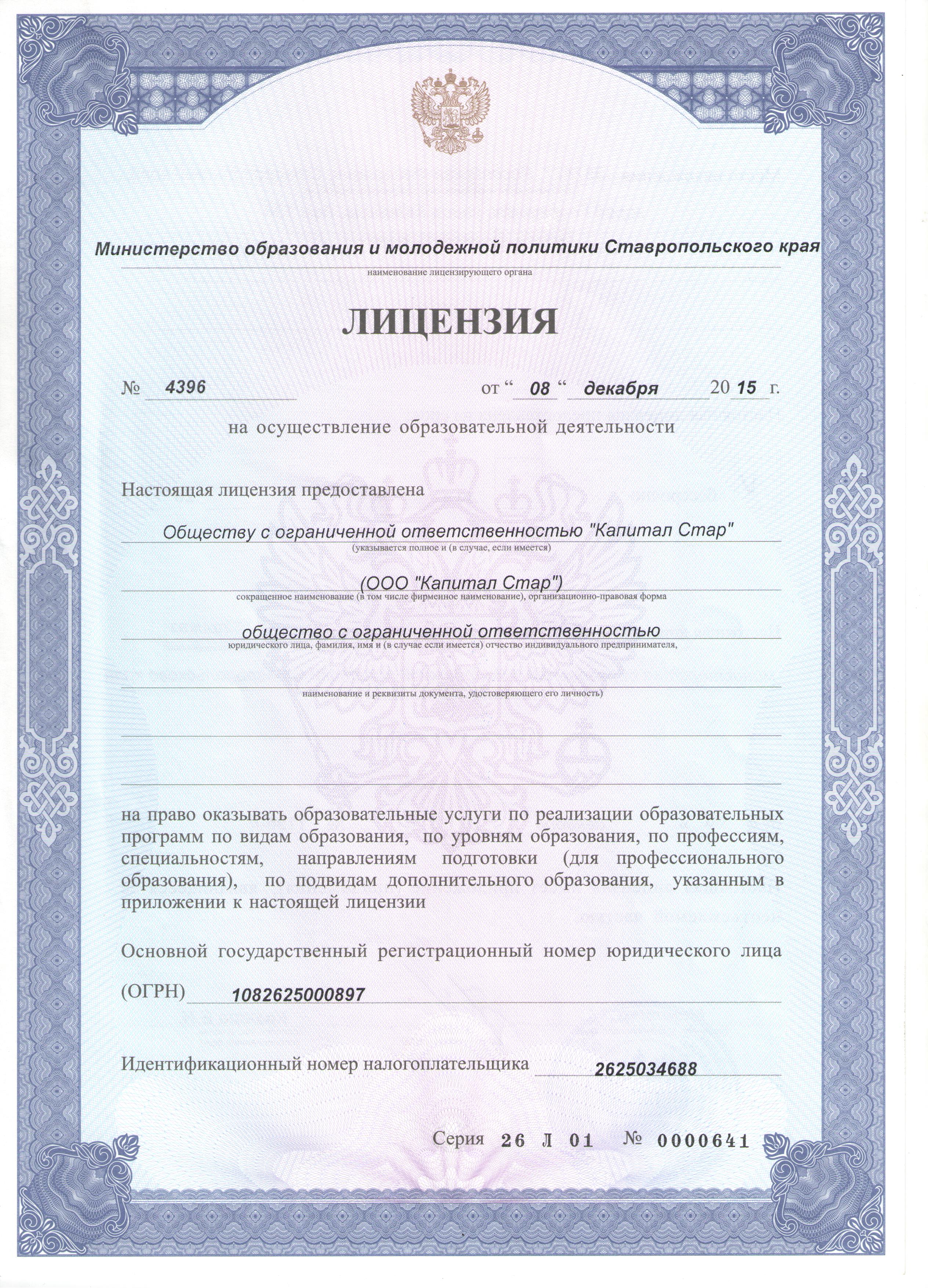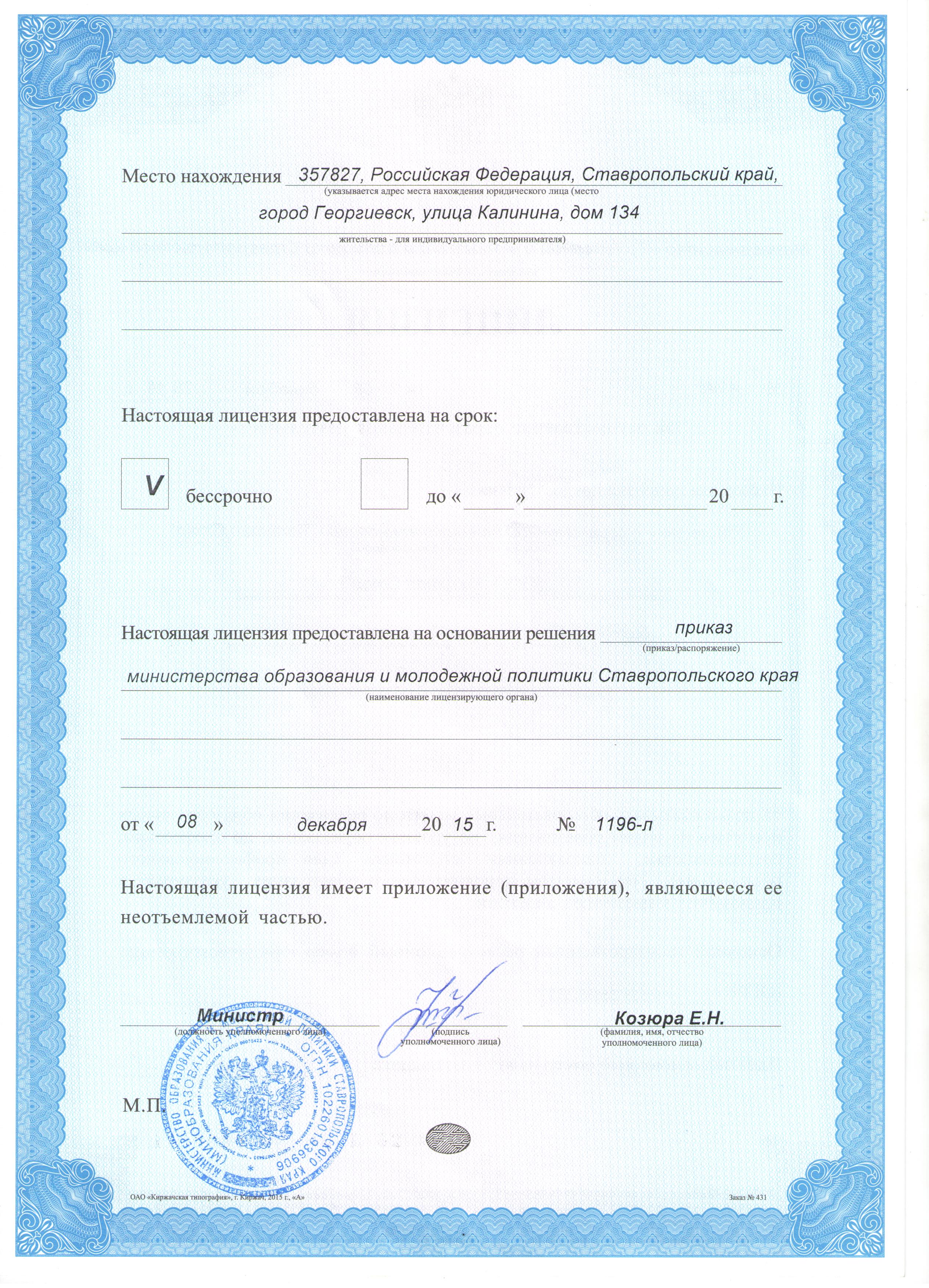 - Лицензия на осуществление образовательной деятельности