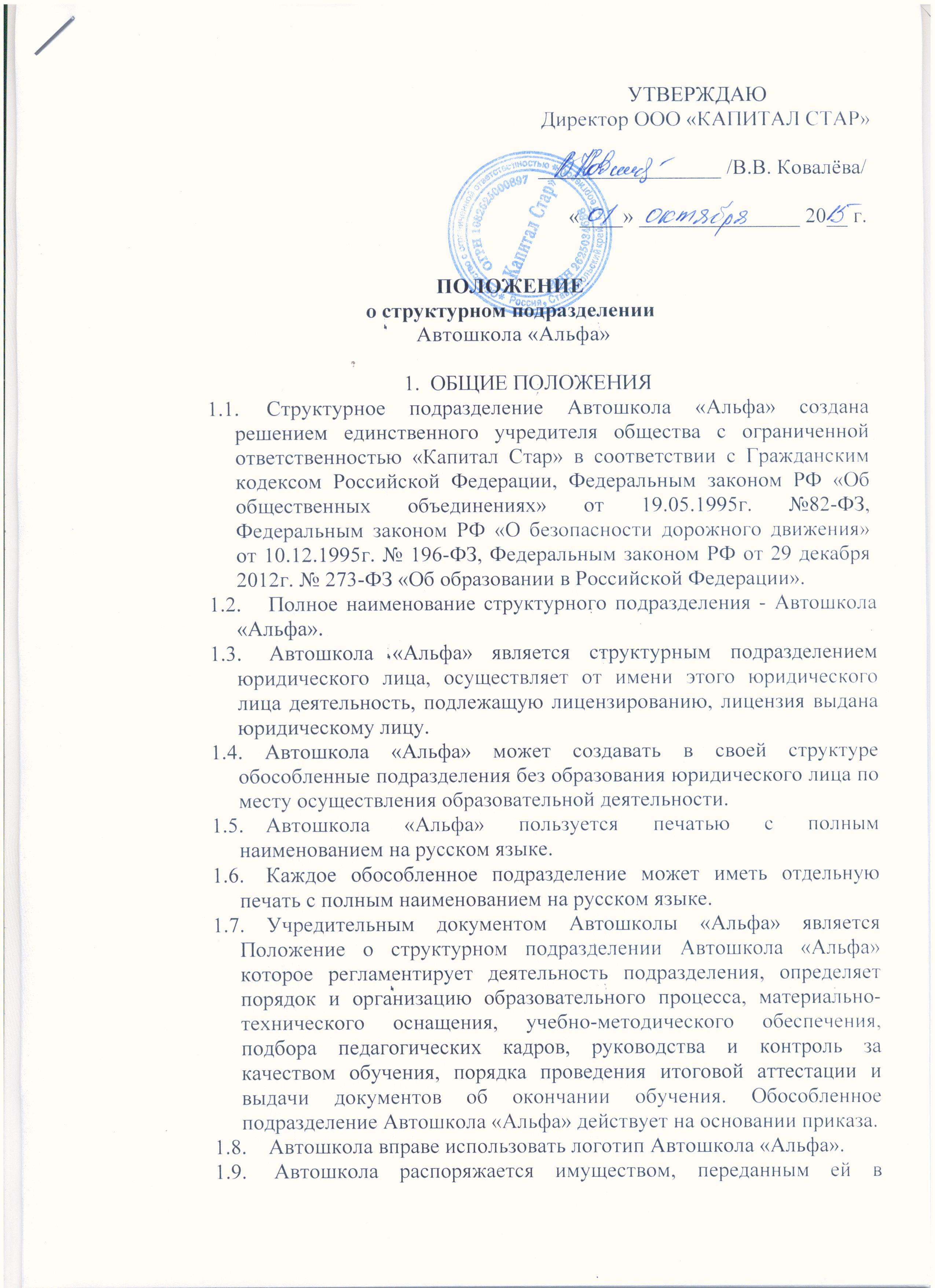 - Положение о структурном подразделении