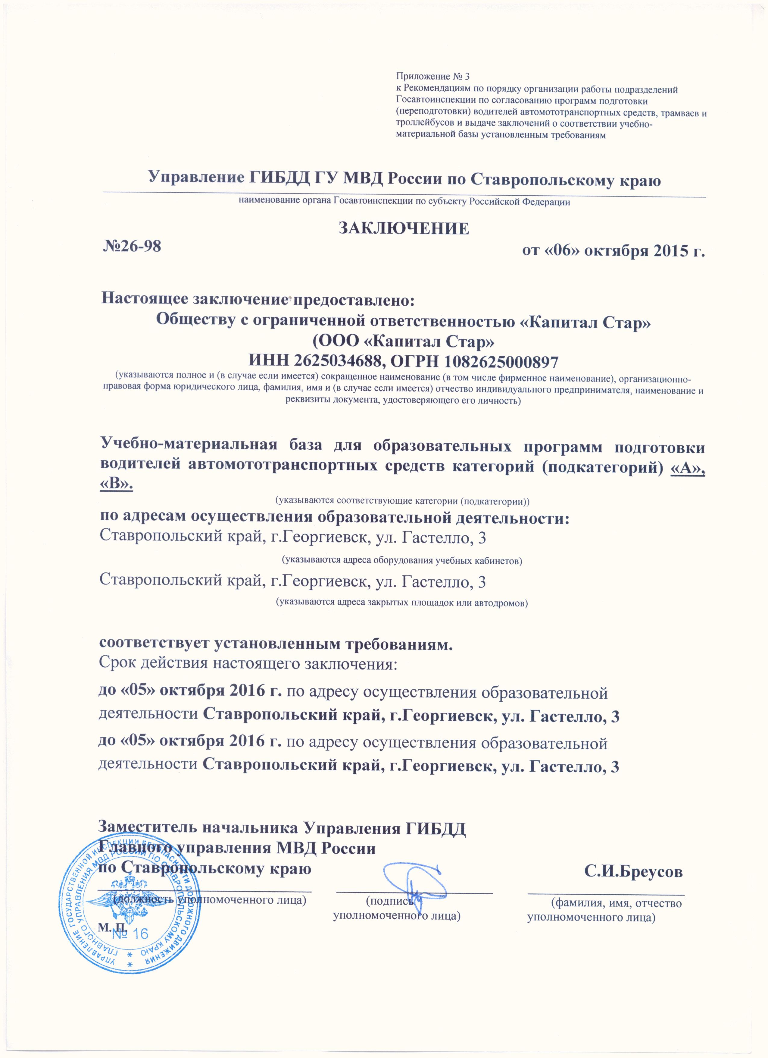 - Заключение ГАИ